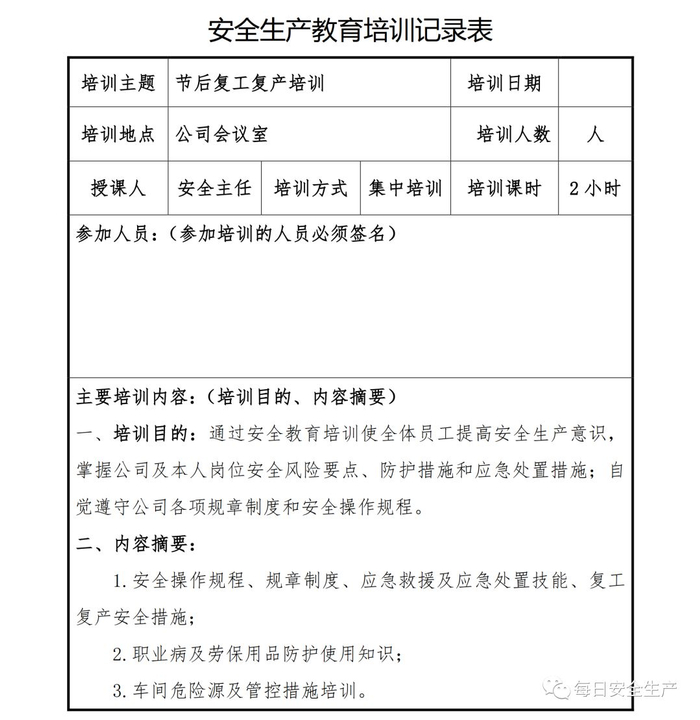企业要对新入厂员工和转岗员工进行“三级”安全教育培训;要对节后返回原岗位工作的员工进行一次安全知识再教育再培训,唤醒返岗员工安全生产意识,提高安全操作技能,让员工心理意识从放假过渡到工作上来;要严格审核特种作业人员资格,确保持证上岗,对特种作业人员进行岗位安全教育。同时,针对员工可能出现的“假期综合征”带来的风险,要加以预防和控制,减少因人为操作失误引发的生产安全事故。