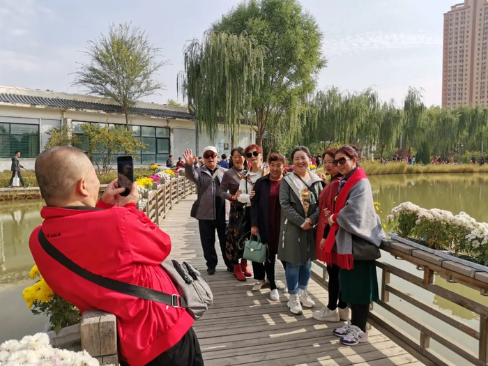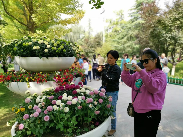 兰州菊花展自2006年开始举办,迄今已成功举办14年,并已成为我市最具品牌影响力的花卉活动之一,并成为摄影爱好者的乐园。记者在植物园看到,这里游人如织,举目望去,四处可见拍照和录制视频的游客。“不要乱抓,这些花是让大家看的,别弄坏了。”记者在兰州植物园采访时,一对夫妇正对前面跑着、并不断用手拨弄路旁菊花的小孩说着。这位姓蒋的年轻爸爸笑着对记者说,“‘双节’期间,他在老家玩了三天,和长辈一起过中秋节,剩下的几天假期,便计划着来植物园玩玩。这里的菊花很美,可以说是一场视觉盛宴。” ,据园方统计,“双节”长假,前来赏菊的游人有38万(人次)。