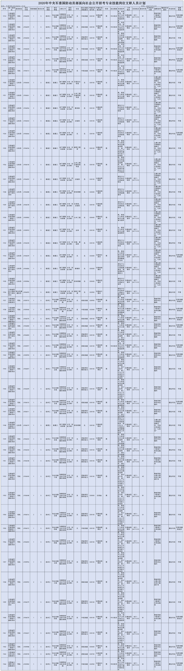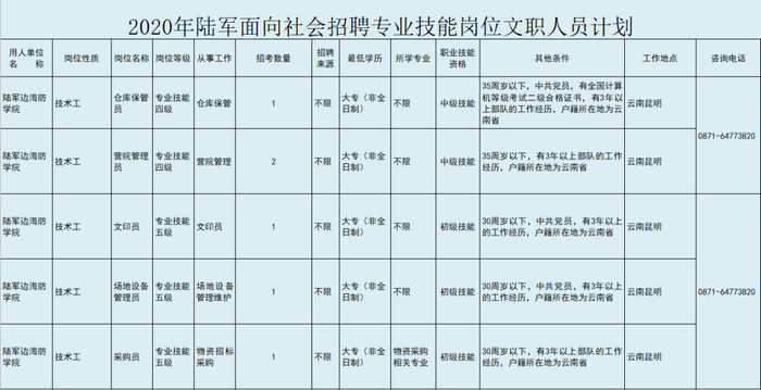 原标题:速看!第二批军队文职人员公开招聘!云南多地有岗位,专科即可