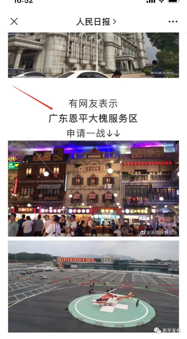 10月6日,人民日报微信公众号发布推文盘点各大优秀高速公路服务区,并“点名”广东沈海高速大槐服务区“也可一战”。