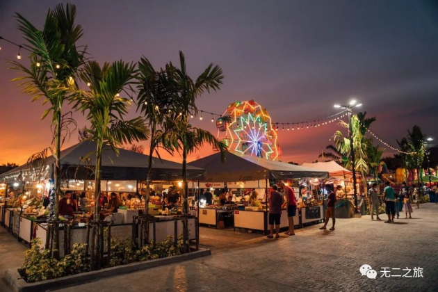 日暮西沉,岛上灯火渐亮,比白天更热闹。这里有许多露天餐馆,可以坐下来点几盘特色菜,喝酒、聊天、仰望星空。