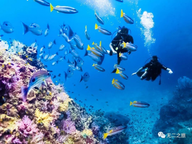 当然,这里也是最佳游泳和潜水点之一。跳进深蓝的大海之中,像进入了另一个世界,彩色鱼群游来游去,瑰丽珊瑚如梦似幻,令人沉迷。