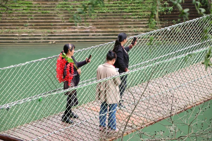 游客在吊桥拍照