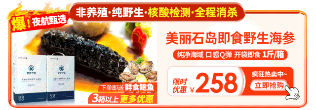 美丽石岛即食野生海参,连续四年入选夜航甄选健康食品,累计销量近10万斤,品质和口碑都相当过硬!