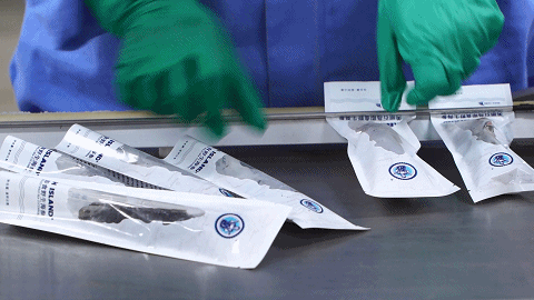我们的海参在生产加工环节采用低温速冻技术,对发制好的海参进行速冻处理,速冻道的温度达到零下35至零下40摄氏度,海参进入到速冻道当中,在5-15分钟之内,就可以使产品的中心温度达到产品最佳锁鲜温度,也就是零下18摄氏度,这样不仅能够提高海参的速冻效率,而且更好的锁住海参的营养以及保证海参的口感。