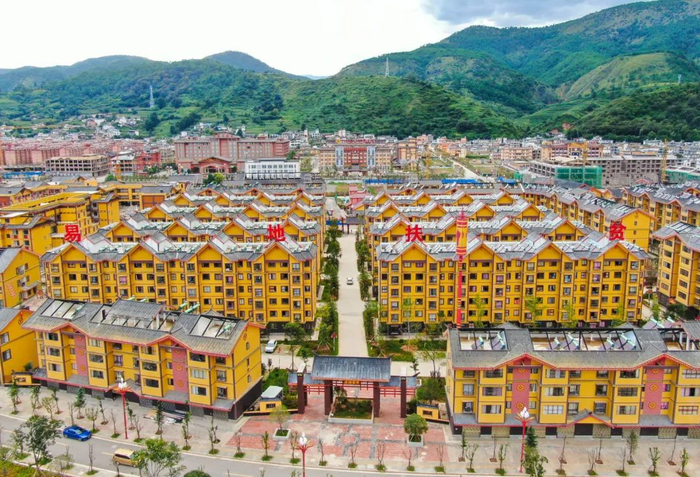 在宁蒗县政府所在地大兴镇,异地搬迁集中安置点三期在当地是体量很大的一个建筑群。一栋楼挨着一栋楼,次第排开,蔚为壮观。这里可以安置1000多户3000多人。安置点里配套了学校、幼儿园、小超市和活动广场。