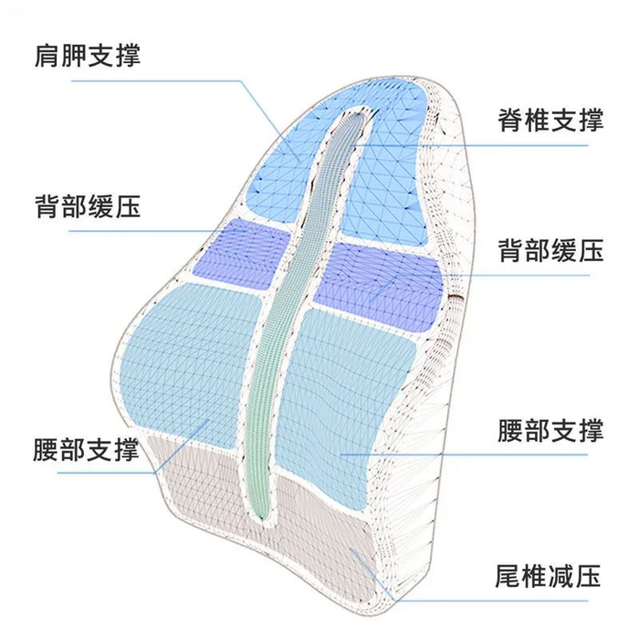 体验过它舒服到让人惊叹的坐感,才感受到3D 建模的好,分区支撑,跟身体曲线如此贴合。