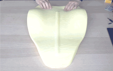 使用这种技术制作腰靠、坐垫时,要先用全息3D结构光对20个标准臀部模型进行数字采样融合。