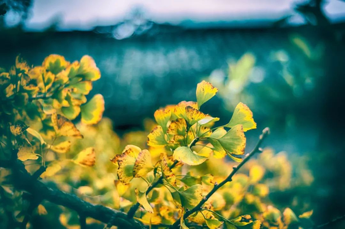 银杏叶也逐渐黄了,