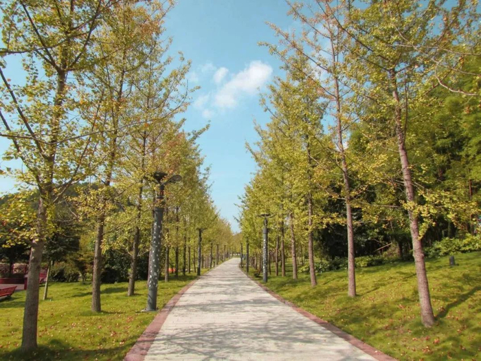 刚进入农博园的检票处,园内的银杏园格外吸睛。一排排的银杏树,树枝上的叶子渐渐泛黄,这里你可以邂逅最禅意的秋色。