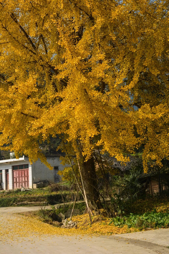 古道边、屋檐下或是石阶上、河流旁,银杏树都会以不同的姿态出现在你的视野。