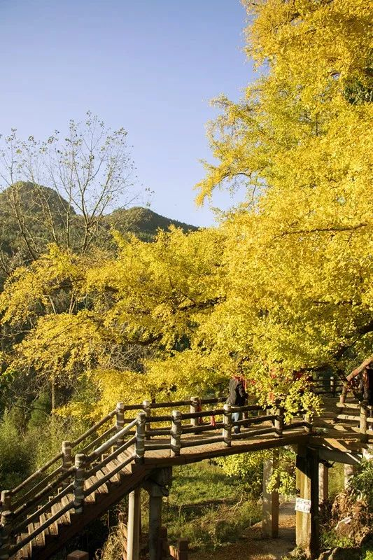 再没有比银杏更适合秋天的颜色了,走进依山傍水的妥乐村,满目尽是金色的世界。妥乐村是一个被古老银杏树包裹的美丽山村,全村拥有古银杏1200余株,是世界上古银杏生长密度最高、保存最完好的地方。