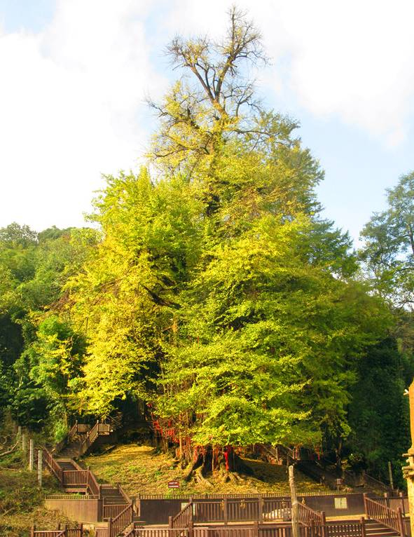 雨冲乡古银杏群,创造了中国银杏之“五最”,即株数最多、规模最大、季相最明显、造型最壮观、保存最完好,有“千年银杏”、“御赐银杏”和“中华银杏活化石”的美称。