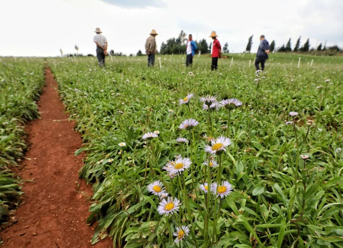 近年来,泸西通过“公司+基地+合作社+农户”模式,扶持泽生生物等龙头企业进行订单式种植,解除老百姓“卖不掉”的担忧,而且基层党员干部率先流转土地,示范种植,“干给群众看,带着群众干,风险干部担”。2019年至今,全县灯盏花种植面积从最低谷的一两百亩扩展到3000多亩,光灯盏花素原料供应就占全国市场的70%,带动了200户约800人脱贫。