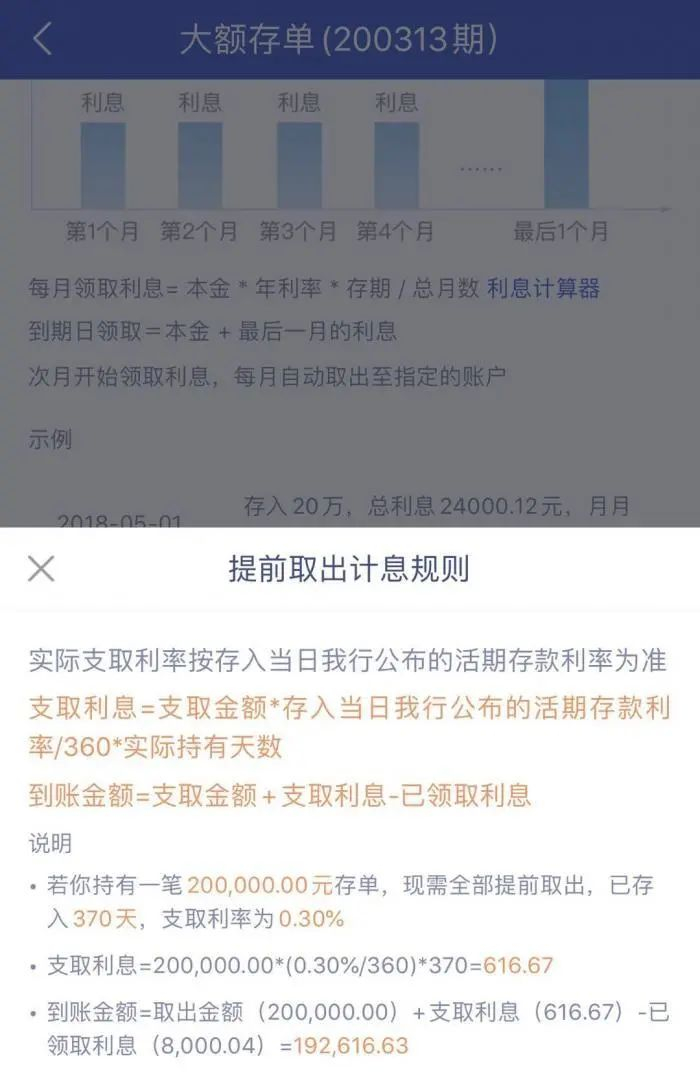 2020年3月,央行下发《中国人民银行关于加强存款利率管理的通知》。央行此次新规中,对定期存款提前支取靠档计息等不规范存款“创新”产品作出整改要求。央行认为,“靠档计息”产品违反了《储蓄管理条例》“未到期的定期储蓄存款,提前支取的按支取日挂牌公告的活期储蓄存款利率计付利息”的规定。2019年之前,大部分大额存单提前支取允许靠档计息,当年12月开始银行逐渐下架提前支取靠档计息的大额存单,2020年新发行的大额存单全部按照活期存款利率计息。