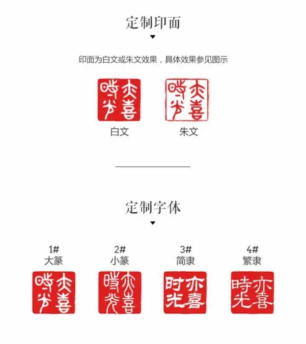您可在以下字体中做选择——小篆、大篆、简隶、繁隶。如对字体有特殊需求,请与我们沟通后再下单购买。