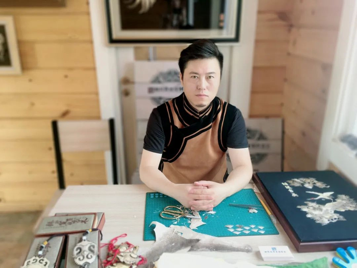 新冠肺炎疫情期间,解永亮通过线上平台,为佳木斯市赫哲族学员讲授鱼皮画技艺,通过讲解和演示,拉近赫哲文化与学员的距离,把民族文化的种子播撒开来。