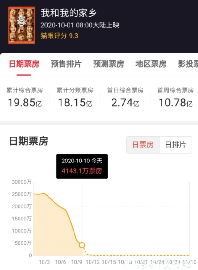 截至10月10日下午4点《我和我的家乡》累计票房达19.85亿