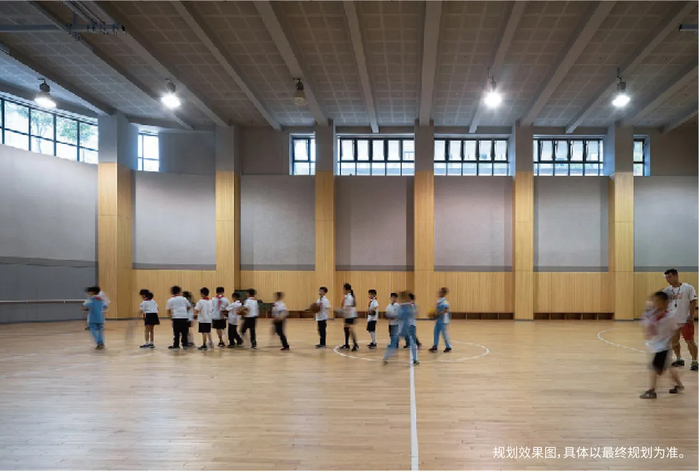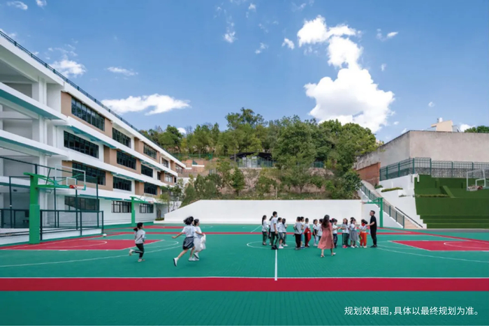 俊发城明通小学规划可容纳约519座观众席的风雨篮球场,以活力驱散阴天的烦闷,用欢乐打破雨季的阴沉。