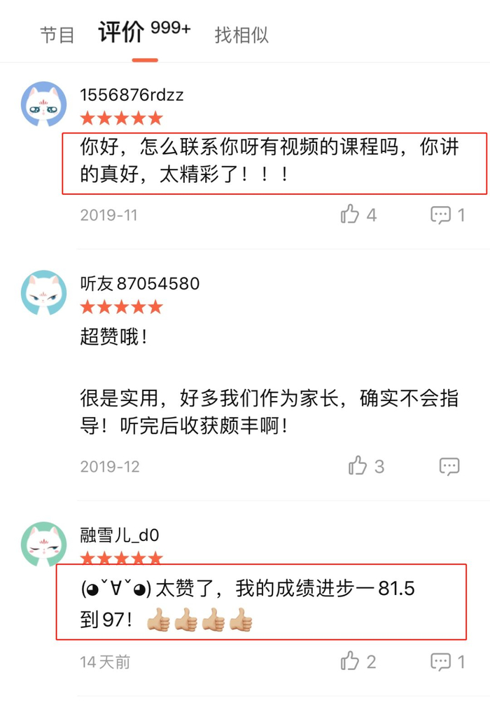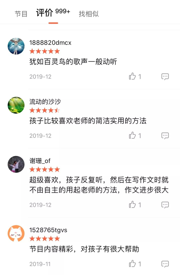 在喜马拉雅上,家长们对她的课都是百分百好评,纷纷表示这真是良心课,不仅有效果,孩子还爱听,纷纷求她的视频课程!