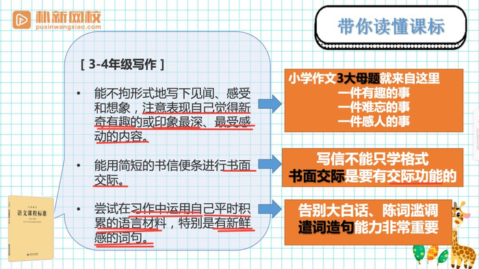 作为朴新教育集团全国语文培训师,在12年的一线教学中,花生酥老师深谙小学不同年级孩子的写作病症和兴趣重点。
