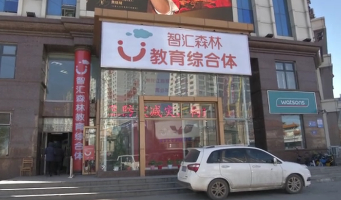 一份学费牵扯出了两家教育机构,那么王惠娟的学费究竟在哪里,咿呀机器人机构负责人的说法是否属实呢?记者跟随王惠娟来到了咿呀机器人原址,一曼街泰山运动城。与王惠娟最初来到这里报名时不同的是,现在楼体上看不到大森林教育综合体的海报广告,而是智汇森林教育综合体的海报宣传。