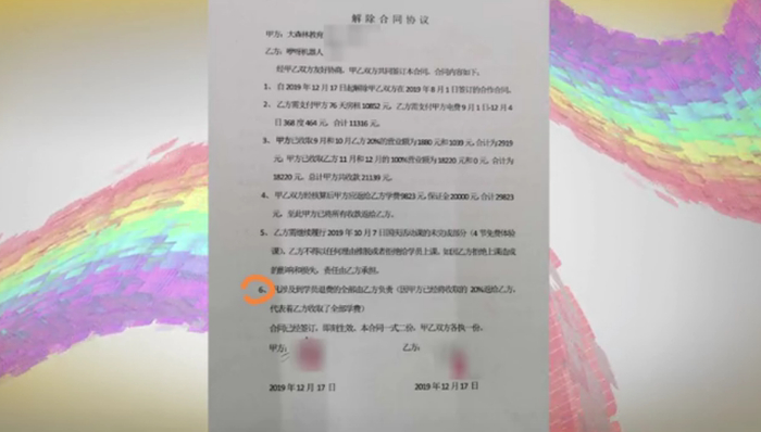 在大森林教育综合体提供的与咿呀机器人2019年12月17日签订的解除合同协议中第6点可以看到,双方就学员退费问题已经达成一致,将全部事项交由乙方咿呀机器人负责。但是对于大森林教育综合体负责人对双方就合同达成协议的说法,咿呀机器人机构负责人并不认同。