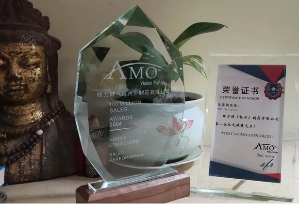 ▲2004年眼力健亿元销售先生奖杯和荣誉证书
