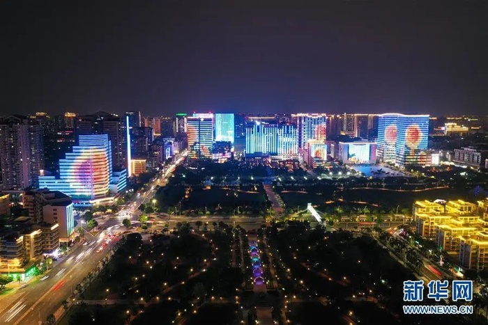 9月6日拍摄的汕头市时代广场夜景(无人机照片)。新华社记者 陈晔华 摄