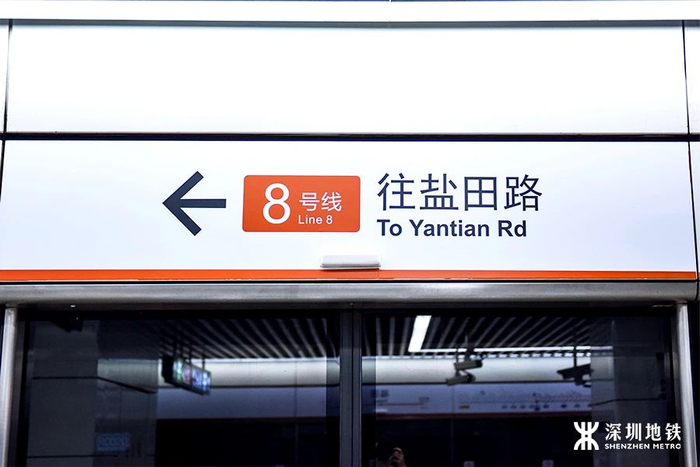 为了让市民能更好地区分两条线路以及列车的行驶方向,8 号线一期的导向标识也将与 2 号线统一线色、分别命名。其中,8 号线一期的线色将采用 2 号线的橙色色调,并在线路图上的梧桐山南站和盐田路标注 8 号线的区段。但需要注意的是,8 号线一期的列车车体颜色区别于 2 号线,采用的是更加醒目的粉紫色,开通后也将在 2 号线区段亮相。此外,目前莲塘口岸 - 盐田路区段还未开通,因此 " 往 8 号线盐田路方向 " 的终点站仍为新秀站。