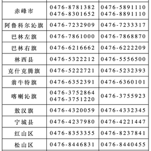 巴林左旗 | 巴林左旗医院 | 赤峰市巴林左旗林东镇契丹大街西段南侧 | 0476-7882536转8400 |