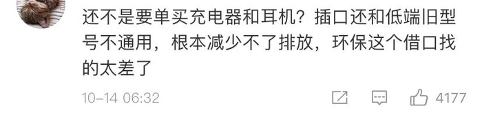 不过对于充电电缆接口的不兼容,也有很多网友吐槽,称这不是真的环保。