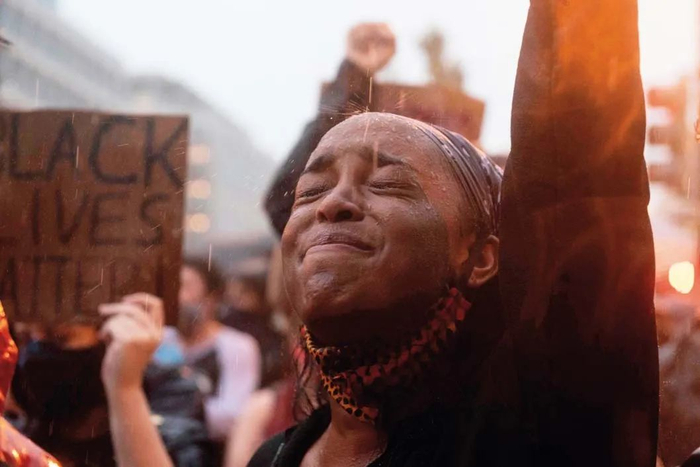 6月5日,在美国华盛顿,人们冒雨参加因弗洛伊德事件引发的抗议活动