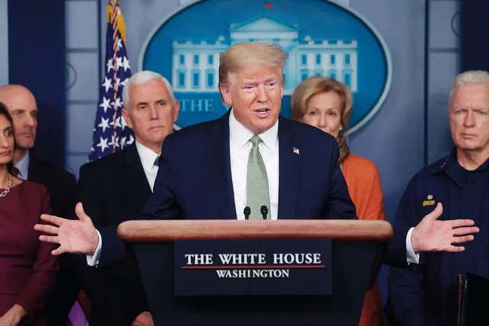 3月17日,在美国华盛顿,美国总统特朗普在白宫举行的新闻发布会上讲话