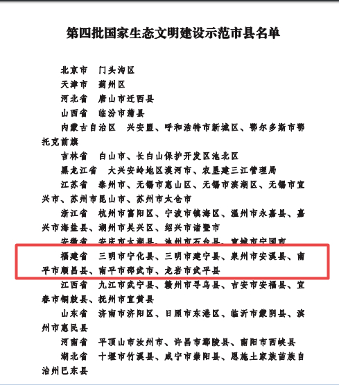 第四批国家生态文明建设示范市县名单