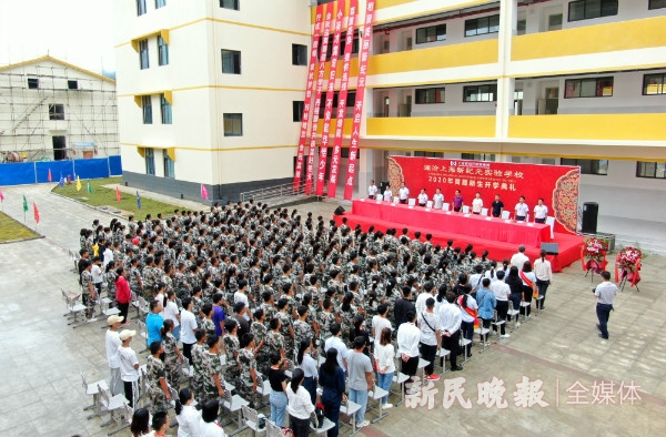 9月16日上午,一场特殊的新生开学典礼在澜沧上海新纪元实验学校举行。有多特殊?这是学校的第一届开学典礼,而校园其实还没有完全建成。当天,两栋教学楼、一栋宿舍楼、一个食堂已可使用;而另一边则布设了围挡,还在火热施工。