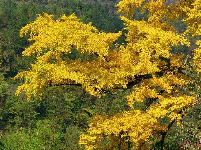 秋天,是金黄的季节。说到金黄,第一时间跳入脑海的就是银杏叶了吧!高大挺拔,深秋,银杏树上硕果累累,灿若云锦,随风摇曳,成了一道靓丽的风景线。