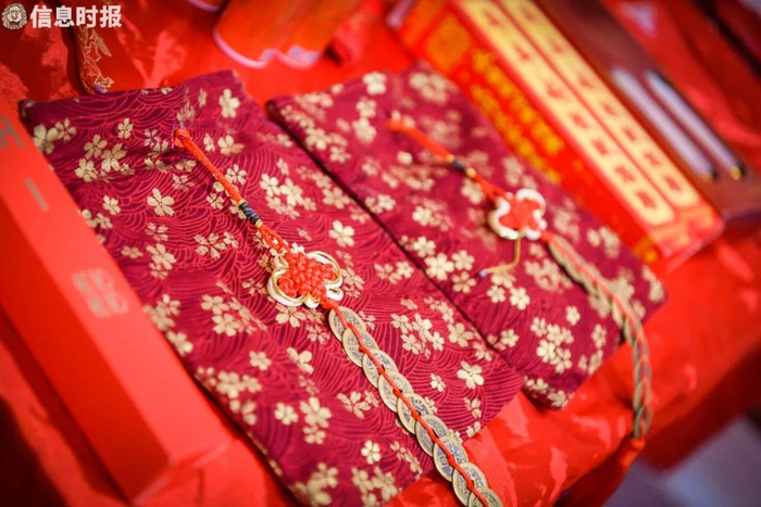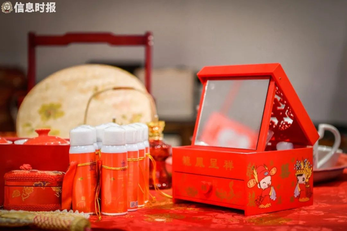 已经入行23年的八姑姐坦言随着时代发展,现在懂得传统婚俗的人越来越少。她告诉记者,自己大概有60多个“徒弟”,而能够深耕的只有20余人,且大部分年龄在50~60岁之间,最小的也40岁了。因此八姑姐不断创新,争取能让更多年轻人看到传统文化散发的光彩。比如过去新人在出嫁前要煲艾草、柚子叶水等“洗身”,当下她将其制作成喷雾,便于携带。