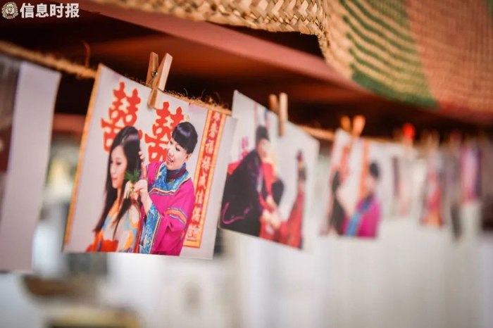 这里呈现了上个世纪30年代至今与婚庆仪式有关的历史图片、用品、饰品等,诸如老式录音机、洗衣机、缝纫机,过大礼使用的饼盒,开脸用的棉线,上头使用的梳子、镜子,女子穿着的嫁衣、携带的嫁妆等,呈现了一幅生动的婚俗历史变迁图。