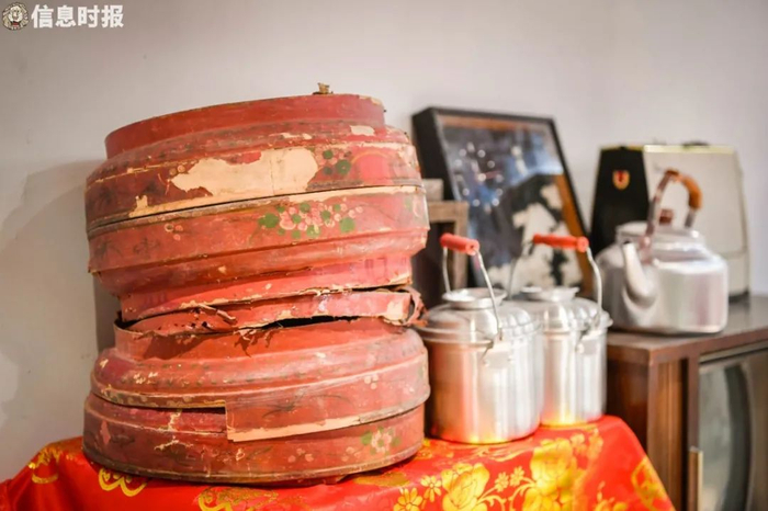 据八姑姐介绍,馆内的老物件都是她“千方百计”通过不同的渠道收集而成的。比如从自己家中或亲戚家中找到的过礼饼盒、电视机;从某交易平台买回来的老式洗衣机......其中里面部分物品已经有了上百年的历史。