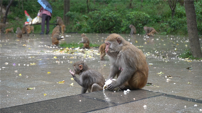 “市民投喂猕猴,给我带来了翻倍的工作量!”公园内的保洁人员陈义琴说。