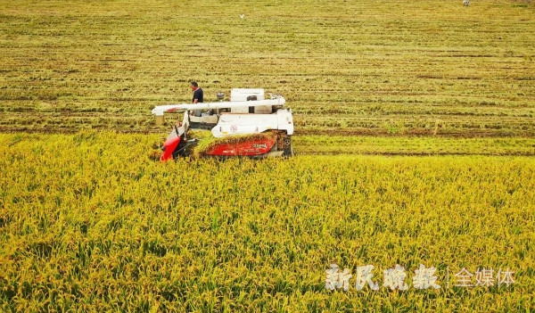 图说:闵行区浦江镇种植的水稻进入收获期。张龙 摄