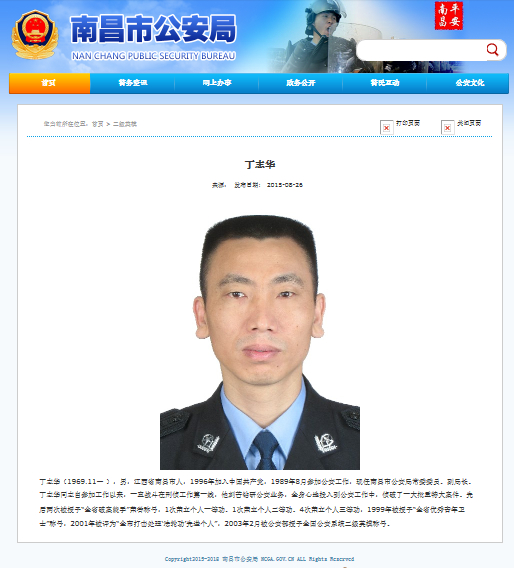 南昌市公安局副局长、“警界英雄”丁志华主动投案