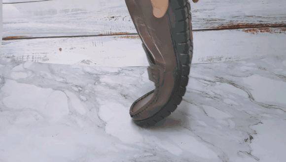 加上柔韧缓震的橡胶底,像小型的“蹦蹦床”,减轻行走负担,还特别防滑。