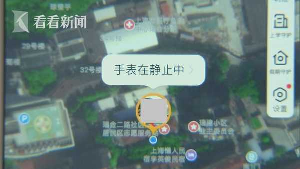 朱女士告诉看看新闻Knews记者,9月30日晚六点多,她从学校接了女儿后,驾车经南浦大桥、外滩隧道,前往虹口区吃晚饭。之后就原路返回锦绣前城小区,当天晚上8点多,朱女士发现女儿的手表不见了,于是她就打开了小天才APP,根据定位寻找手表。