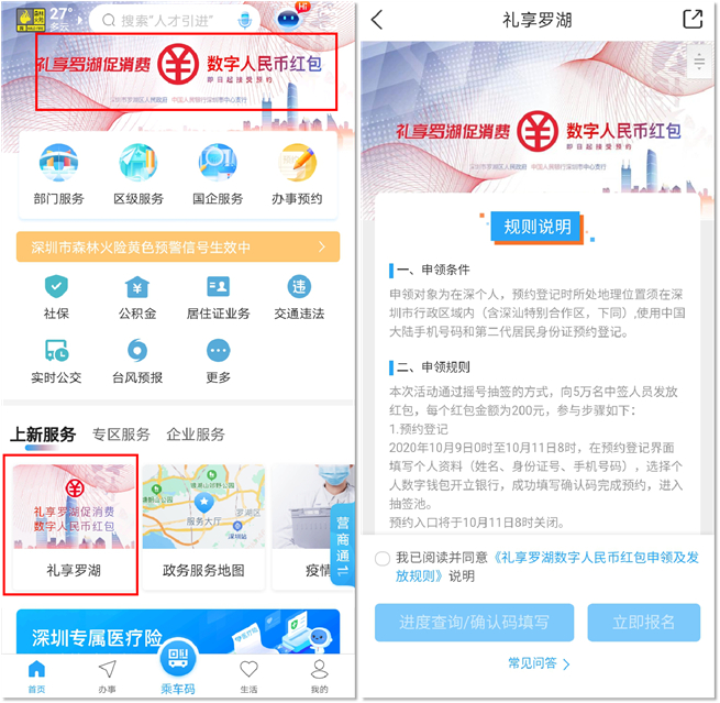 为推进粤港澳大湾区建设,10月9日,平安智慧城市智慧生活联合深圳市人民政府、人民银行开展数字人民币红包试点——“2020礼享罗湖”系列促消费活动正式开启,面向在深个人发放1000万元“礼享罗湖数字人民币红包”,每个红包金额为200元,红包数量共计5万个,该红包采取“摇号抽签”形式发放,市民需通过手机在“i深圳”活动预约平台进行登记,中签人员可根据中签短信指引,下载安装“数字人民币App”,开通“个人数字钱包”后领取。这将是个人数字人民币钱包首次在大众面前亮相,给深圳的消费者带来新奇的支付体验。