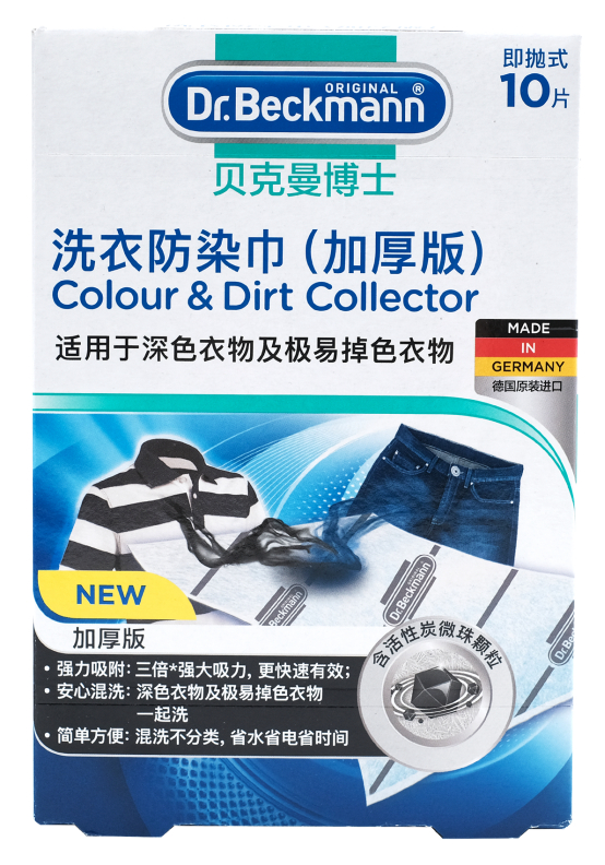 正值换季,牛仔裤,深色运动裤等极易掉色的衣物,是防染巾产品防染、护色的重点对象,贝克曼博士新上市的加厚版洗衣防染巾,采用加厚强韧拉毛布料材质,添加活性炭微珠颗粒,吸收空气和水中的色彩粒子、异味及杂质,三倍吸力,防染功能更强,保持衣物新“净”界!