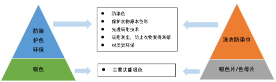 市面上有不少针对洗涤过程中衣物色彩问题的产品,比如吸色片和色母片是着重吸附水中染料粒子的,对于有掉色情况的衣物,尤其是掉色较为严重的衣物,其吸色作用会解决部分烦恼。需要注意的是,此类产品的功效易达到饱和,偏厚的材质有可能在使用过程中掉落毛絮,使得衣物本身的颜色被一并洗掉。防染巾的发明是为了防止一起清洗的衣物相互串色,重点在于防染,有效的防染需要建立在保护衣物本身颜色的基础上,因此二者在材质和工艺上有所不同。建议消费者在选择产品时,充分了解吸色片与防染巾的区别,按需选择。