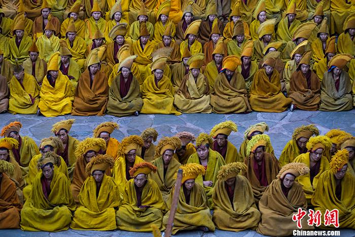 10月6日,扎什伦布寺高级辩经现场。中新社记者 何蓬磊 摄