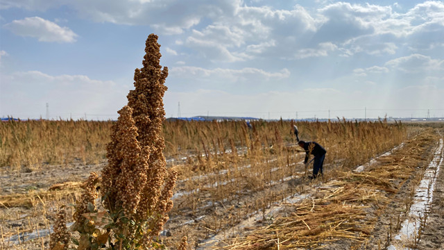 本身藜麦种植的难度并不大,村里的藜麦种植大户刘敏告诉记者,她从2019年开始种植藜麦,目前拥有300亩的种植面积,本身藜麦的种植难度并不大,前期除草需要投入一些成本外,并不需要太复杂的田间管理,而且耐旱,在不使用化肥的情况下,盐碱地上也可以达到亩产200斤以上。